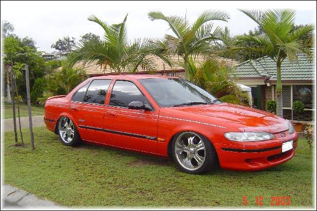 mate sweet car! i own a '96 ef falcon gli thats just about to get a BIG makeover. i realy like the body design of this ford and i have ever since they came out on the market. its been 8 years since they came out and now i finally own one. its got a 4litre 6cyl on dual fuel but when im finished it will all be feed by a garrett t38 with custom built intercooler plumb back bov, and still not shure about giggle gas (nos) i dont think it will mix too well with the lpg. pluss ive got a few other tricks up my sleeve but im keeping them to myself untill the car is finished. your car though, great car, done well, classy without going over the top. whats running under the bonnet of your beast im keen to find out! |