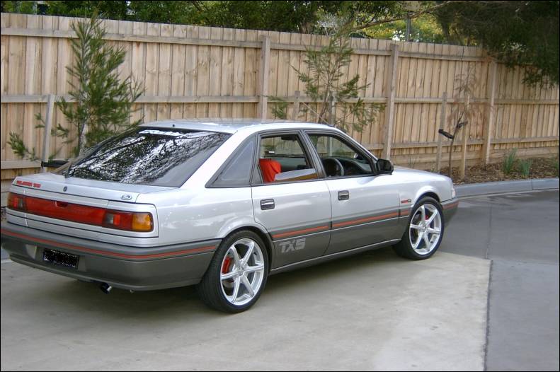 Hey EVL; think i just saw those rims for sale on tradingpost, what size are they? what tyres you running? ive got an 88 tx5 ghia, n those rims look real nice. cheers.