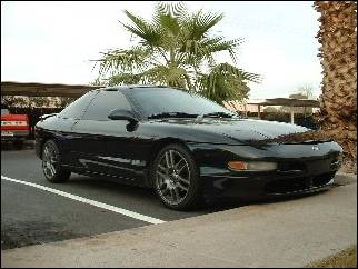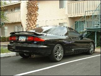 Black with purple racing decals (stock) | Black as can be tint | Undercar purple neon kit | Purple strobes in driving lights | Window washer purple LED's | Sleepy eye headlights with HID's | License plate: KECH ME |