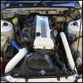 Generic brand dry filter type POD filter. 3inch laser cut flange from Turbo outlet, 3inch dump pipe mandrel bent to CAT, 3inch Machined CAT inlet/outlet, 3inch Mandrebent piping through to Muffler, 3inch Offset dogleg style muffler, 3inch Mild steel tip (no rice :) |