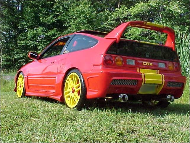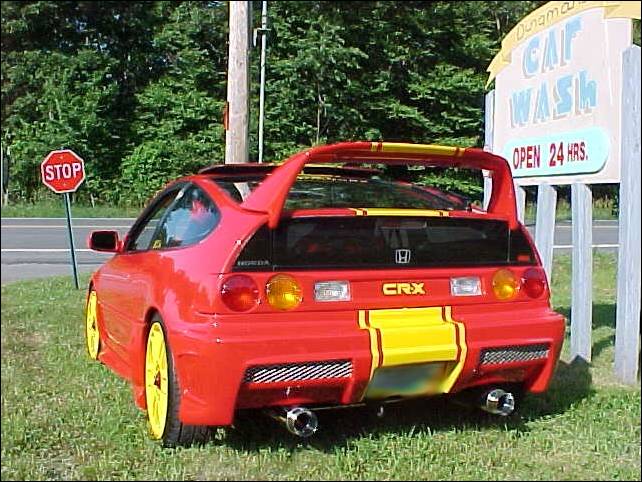 sick pics mate show us some engine pics because i have seen some really worked crx's and they can become an awsome machine. but whats with the paint job surly you could have come up with a better paint scheme and where are some front pics comon man!!! |