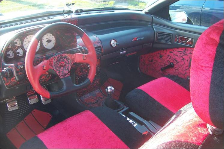 Complete custom paint, neons, white face gauges with red led lighting and Pilot D shape steering wheel. |