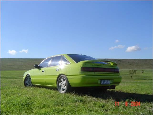 yeh well the pic there is when the previous owner had it, it was auto, he also sold the wheels, and the paint was in bad condition, then some one reversed into me so i would have had to spray the guard,bonit and door, i thought i might as well do the whole car a diffrent colour and take off the shitty side rubber things. if you seen it in real life this looks 10 times better. il get a pic of engine bay soon |