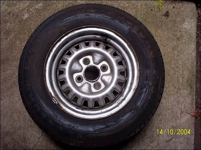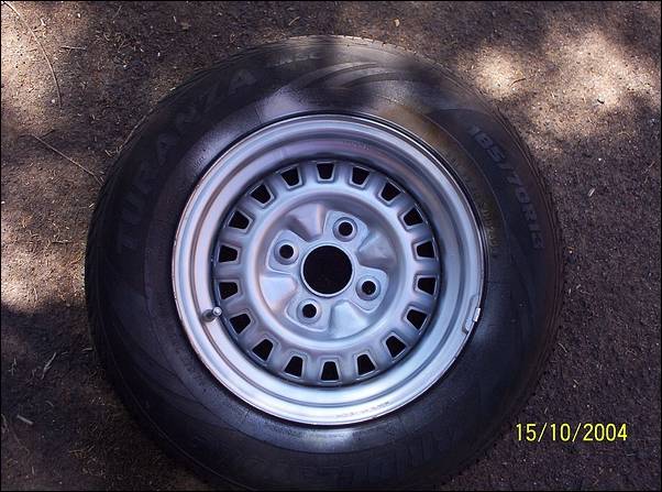 I'd like to have the car resprayed in metallic silver, but with a quote of over $3000, that's somewhat beyond my budget at this stage......however, as you can see from the photos, I've already started respraying the wheels, using Holts dupli-color Auto Spray ( in 150 gram cans), and at only $10 per can, it's a relatively cheap alternative. The Dupli-Color is acrylic lacquer, and I finished up spraying on 3 coats of Clear Top Coat which also comes in a 150 gram can..... it's sorta like a "budget 2 pac " paint job. Too bad I can't do the whole car that way ! |
