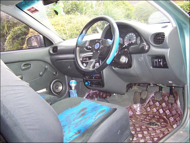 Sound system looks realy nice really like it...Dont like those chekerplated mats though but hey what can ya do..also whats with ya tacho be mounted os low doesnty it piss u off to have to look down at it Chuck it on the dash for all to see.... Other than that real nice car..any ideas for perfomance?? |