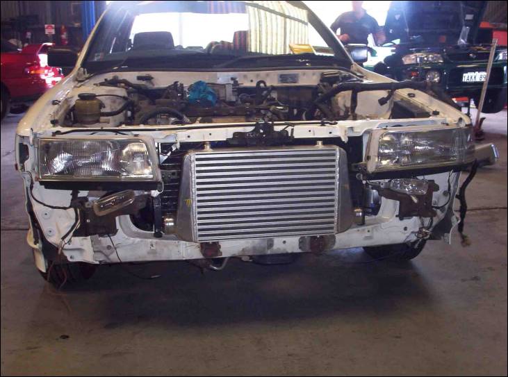he keeps up with me till 3rd gear then im gone. my problem is rally gear box and stock turbo (ran out of money for a hks2540 or bigger, still undecided. chaser guy the fmic is there for later on, no point wasting money on temperory parts. |