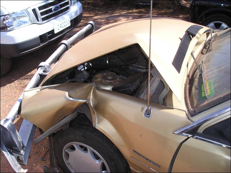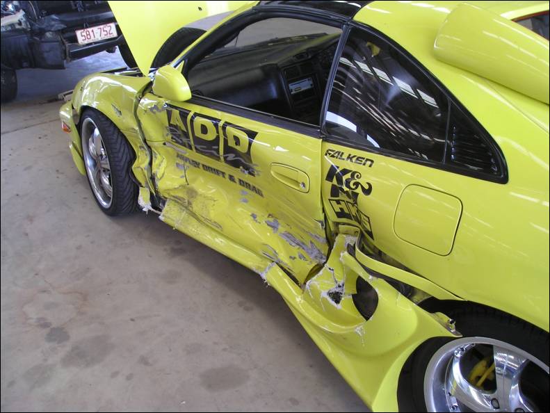 Okay, so basically the car was involved in an accident. The brown station wagon with the cheap-ass bull bar hit me on the left side as I was crossing an intersection. The end result was me copping the blame and being fined $160, and then there was the matter of my own car. With the left side damaged and the front bar damaged by the tilt tray driver, the final bill came close to $20k. I fought the police on who was actually at fault, and after some well written letters they ruled that they did not have enough information to rule either way, so they refunded my fine and cleared my name.