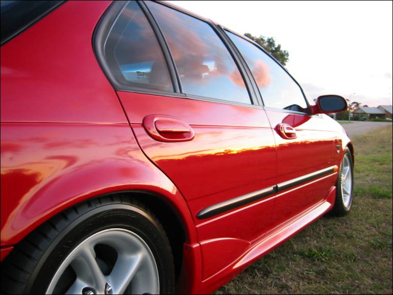 Like my car, an HSV GTS. I stuffed in it two bloody turbos and its got a redesigned front bumper, rear bumper and side skirts. It also has a Bonnet scoop and sounds more like a V10 than a bent eight. And i also managed to fit 22" rims on it.