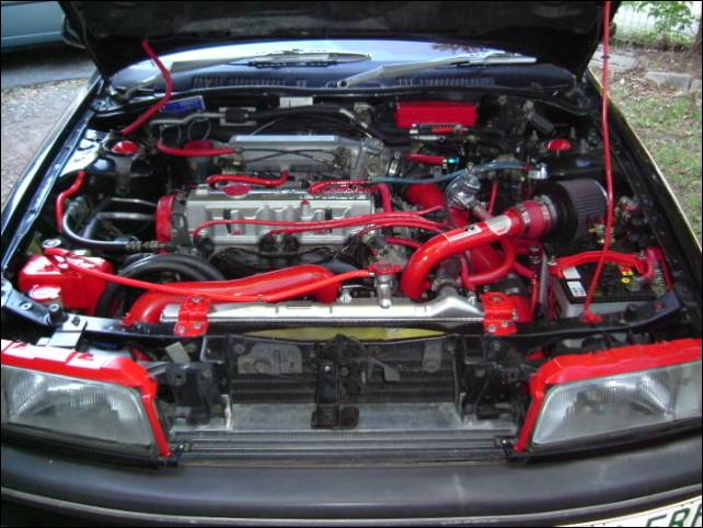 hey texy i got the strut brace off a lancer just had to drill new holes cost me 250. i've got more clear photos of engine comin soon bro. |