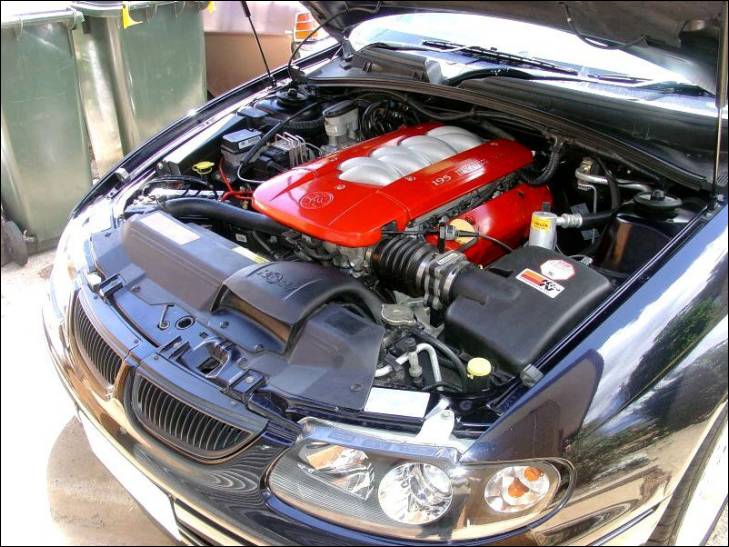 The car has a dual 2.5" exhaust, resonator removed for added sound/flow, sounds very nice, K&N Filter, recalibrated chip, nothing too major yet (BTW this is the HSV 195i motor) |