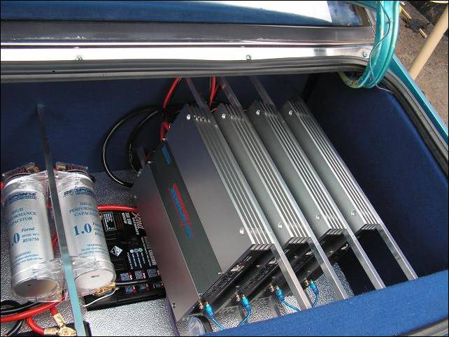 pioneer head unit,2 response Splits,2 venom 8 inch subs ,2 response 2 ch amps, 4 response d class amps, 8 carbon response 10 inch subs Subs, Stinger RCA's, two 60 amp mitsubishi alternators, 4 bond batterys, shit load s of response powercable(2 gauge and 8), response 7 inch screen and slim art dvd player, stinger and aerpro distribution blocks |
