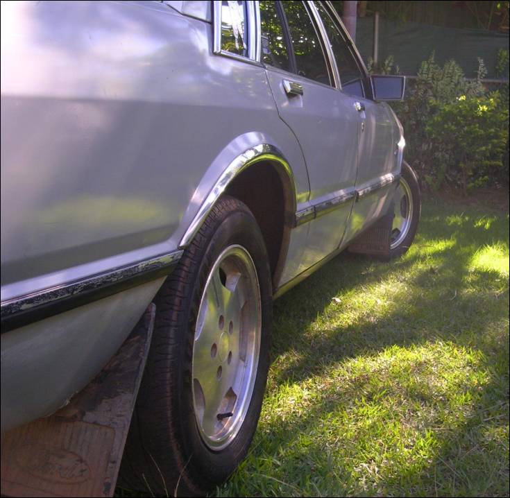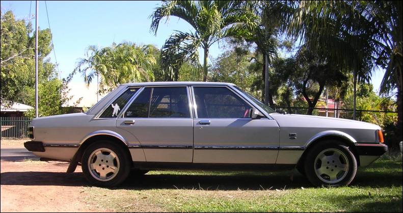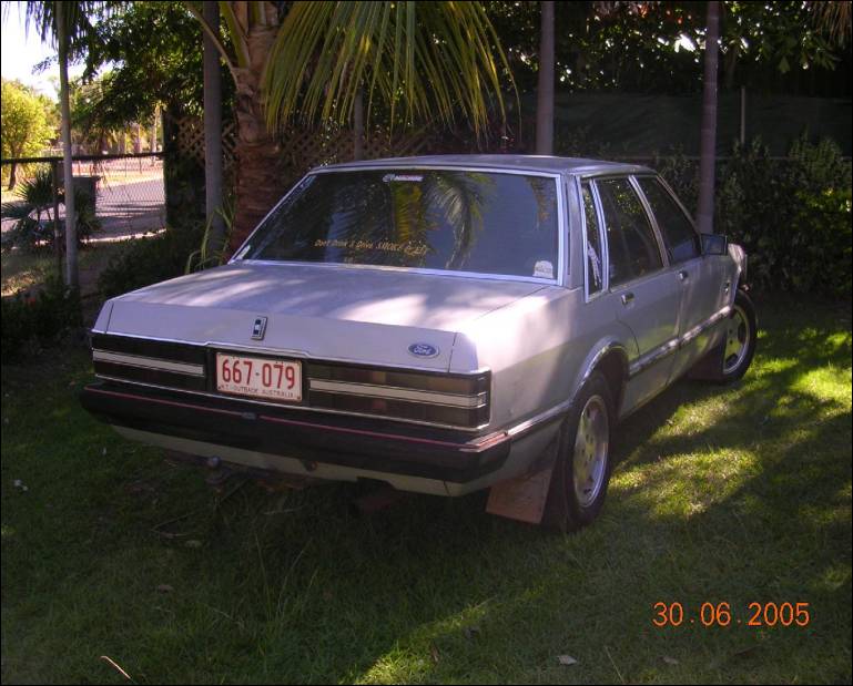 Ok fellas...I now have some pics of the fabled Ford FC LTD. As you can see, it is a work in progress. Future mods include a whole body re-spray, customized XE S-Pack front bumper, XF wrap-around rear bumper, a decent lowering job, an injected engine (preferably a V8) or a 460ci crate motor, full velour interior (charcoal w/ red inserts), and maybe a whole under body neon kit... |