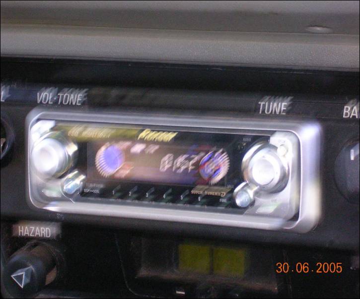 Pioneer Headunit, 2x Sony Xplode Amplifiers, 2x Pioneer 6" speakers (front), 12" Audiosonic Subwoofer in 'custom' box |