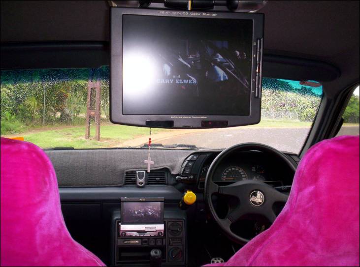 Pioneer CD/MP3/DVD headunit & 10" screen, Rockford Fosgate Amplifier, Earthquake 15" Subwoofer, Sony X-Plode speakers all round. |