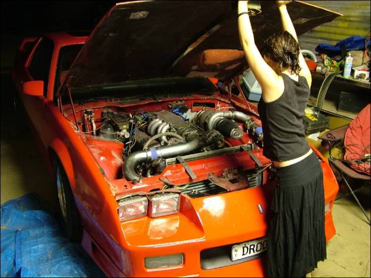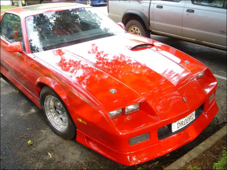 Resrayed Maronello Red. Bonnet is a custom made fiberglass one, with a hand moulded scoop over the turbo. Its also has ACR race heat sheilded fiberglassed into it and hood pins holding it down. Custom IROC-T badges and an aftermarket sunroof. |
