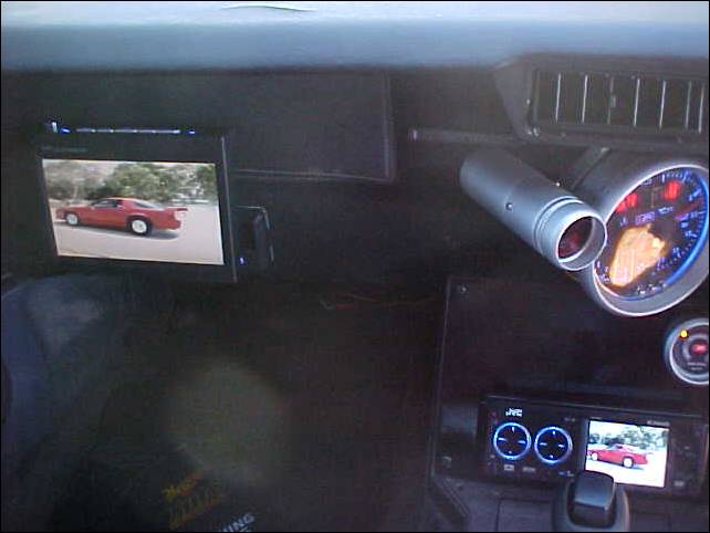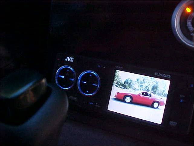 JVC KD-AVX1 indash DVD player with a 3" screen, linked to another 6.5" screen in front of the passenger. Kenwood 6x9s installed into the B-piller. |