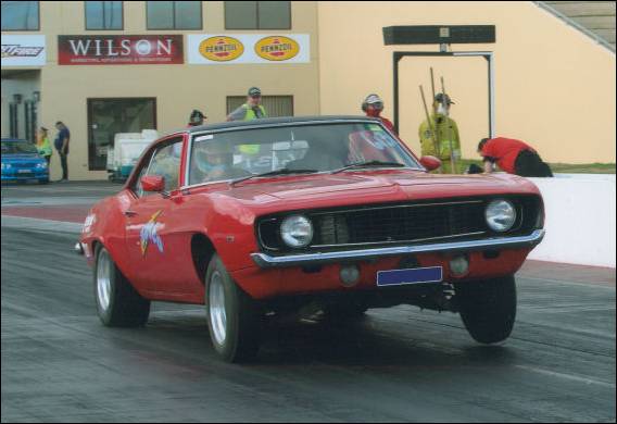 The Camaro runs regulary around 12.1s at W.S.I.D at 110+ mph, in corrected air the camaro would run 12.01 seconds, 111 mile per hour. Horsepower figre is estimated at 348 h.p. using a mathematic formular using the weight of the as car as part of the equation. |