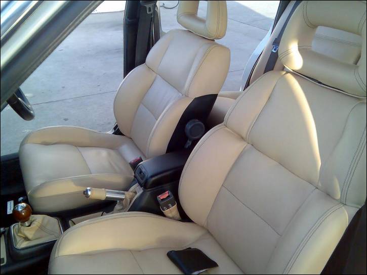 full leather interior, including the seats, dash, doors, roof (sealing), rear speaker stand and all the lil plastick bits all around the interior. i have been able to get the leather for free and i did the steaching all myself so thats why it didnt exactly cost me anything. |