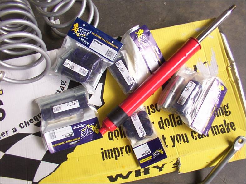 Rear - Koni Shocks, Whiteline 30mm Lowered Springs, Nolathane Bushes, 24mm Sway Bar, Camber Kit |