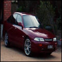 hrm, nice - i have been looking at getting my car (94 tx5 ghia) up to scratch... it *needs* a body kit, no 2 ways about it, those are some pretty slick rims you have there, suits it nicely